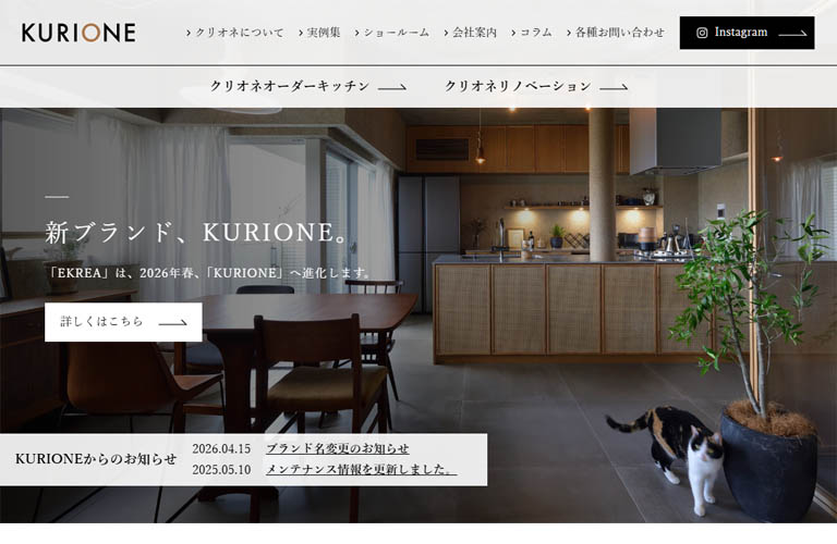 2026年(令和8年)4月15日より、オーダーキッチンの「EKREA(エクレア)」は「KURIONE(クリオネ)」にブランド名を変更いたしました。