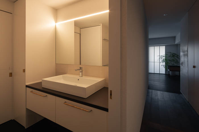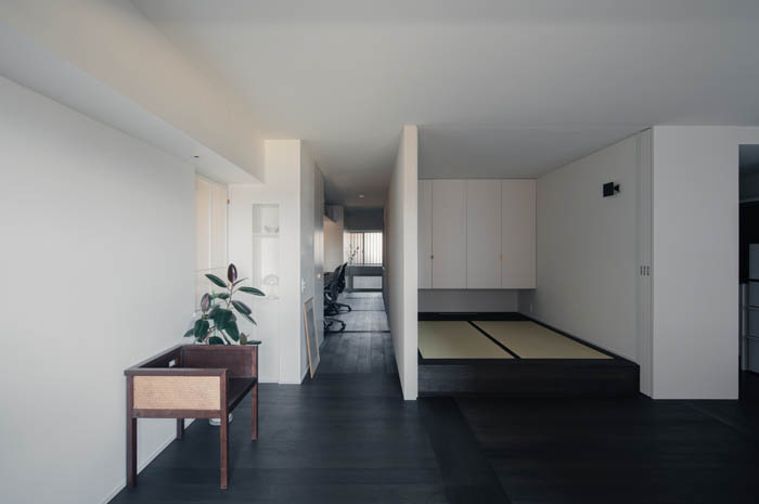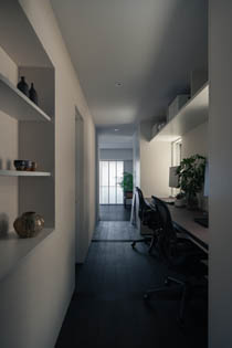 「住と職、光と影、内と外。これまで対立的に分けられてきた領域を、緩やかに重ね合わせる。その重なりを丁寧に調整することで、住まいの場は日常にゆらぎと繊細さを宿す場へと変わっていく。」