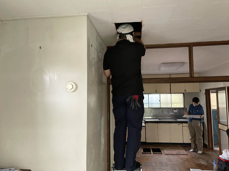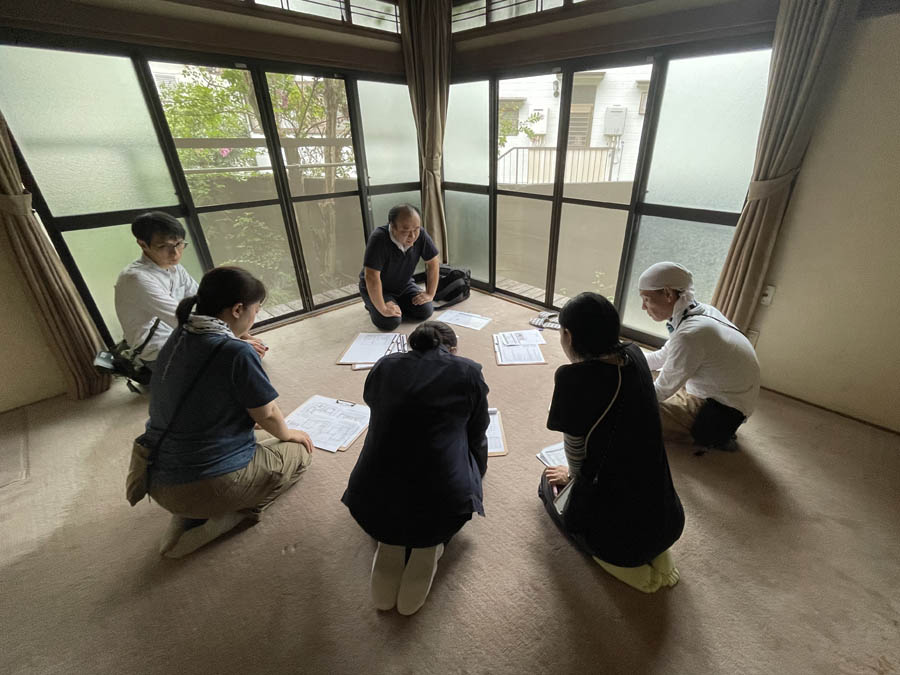 参創ハウテックでは、このようなケースの場合は、一般社団法人住宅医協会と連携して住宅調査を実施します。今回の調査では弊社から3名、住宅医協会3名の建築士が参加し、1日かけて住まいの隅々まで調査しました。