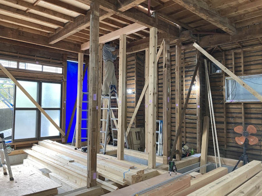 間取りを大きく変える改修工事では、柱を抜いたり新しく建てたりします。柱を抜くことで構造強度を落としてしまわないように、しっかりとした構造計画が必要となります。