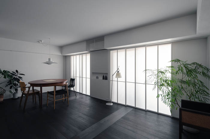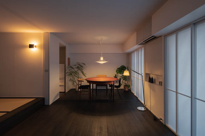 「住と職、光と影、内と外。これまで対立的に分けられてきた領域を、緩やかに重ね合わせる。その重なりを丁寧に調整することで、住まいの場は日常にゆらぎと繊細さを宿す場へと変わっていく。」