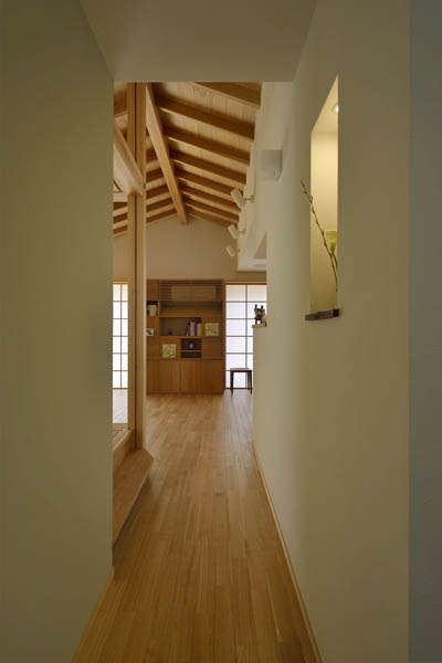 玄関から廊下にかけてのエリア。玄関には大きな収納を設けましたので、いつもすっきりとしています。壁にはニッチを設けて四季折々のインテリアを楽しまれています。