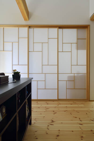 LDKの傍らにあるデスクコーナーは障子を閉めることで個室化。ご主人様によると、以前の住まいにあった廊下の先の書斎の時より机の前に座る機会が増えたとか。